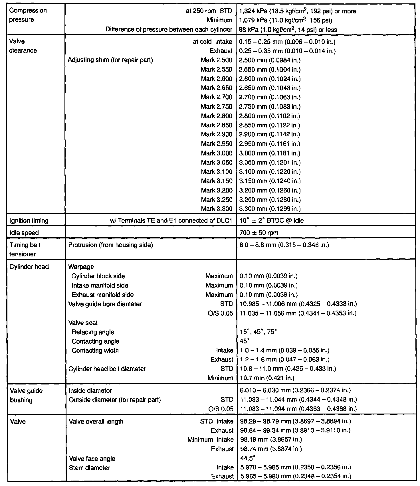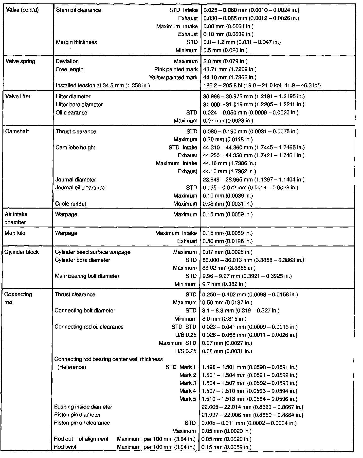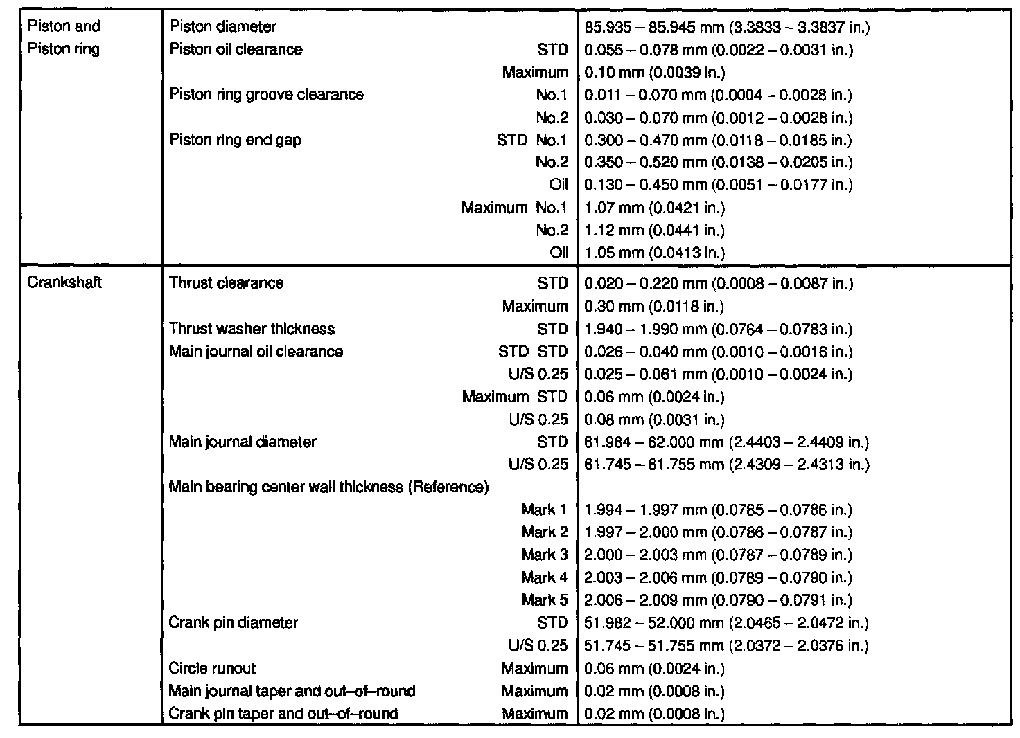 Engine Technical and Torque Data