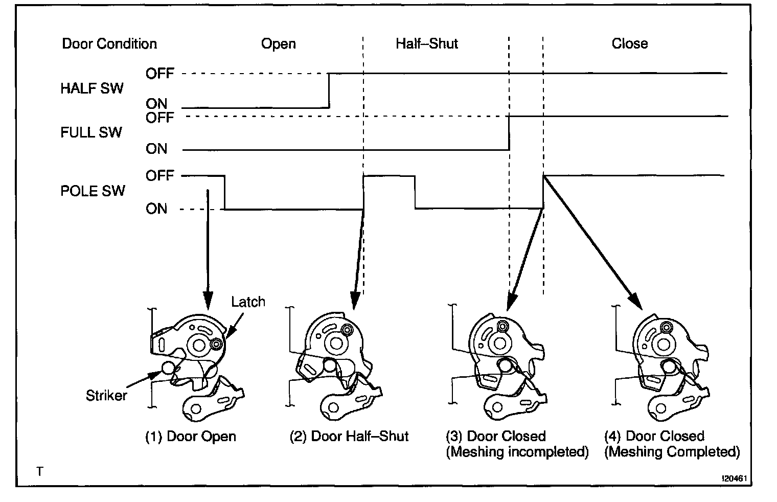 - Half latch switch OFF