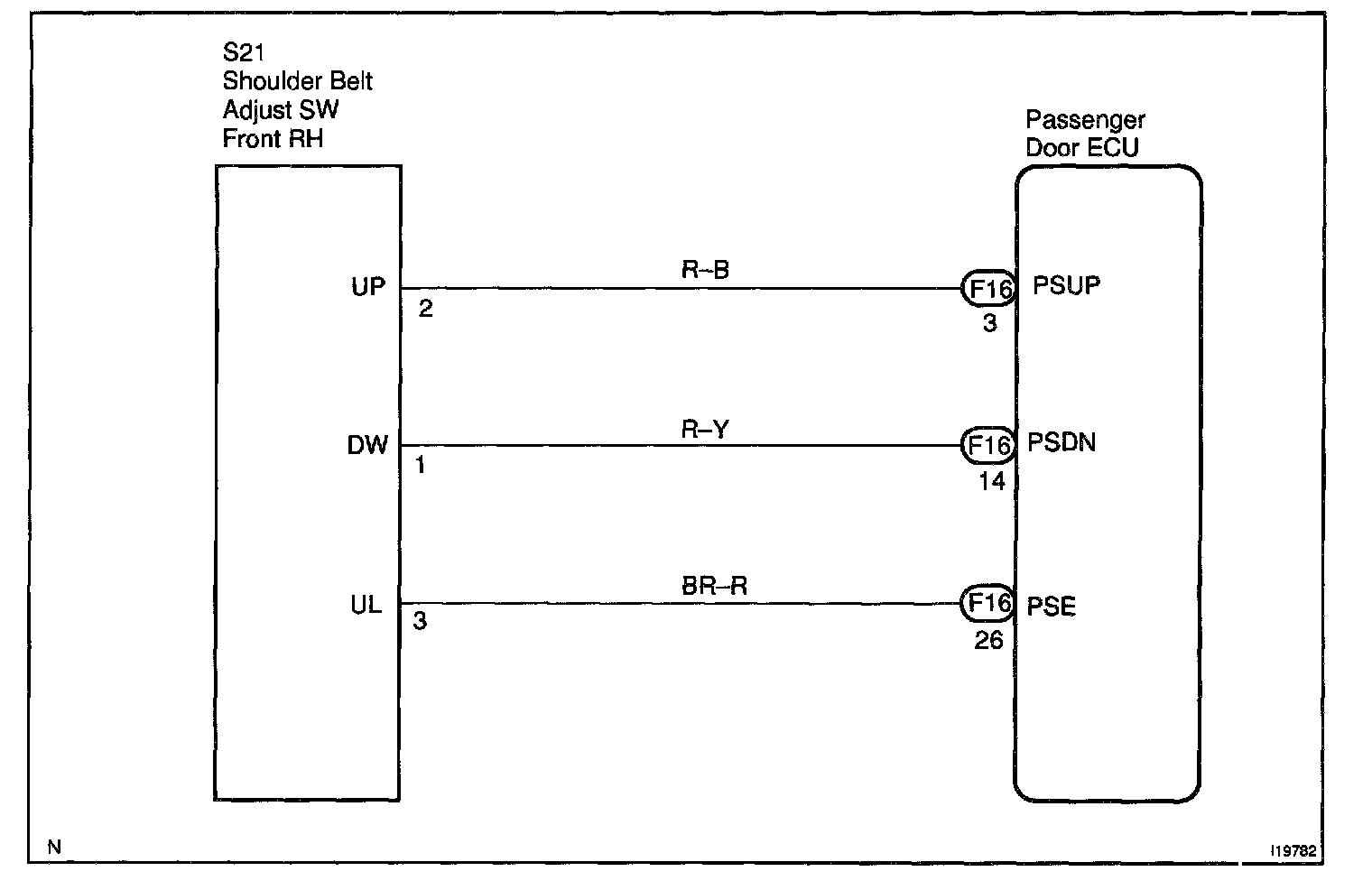 CIRCUIT DESCRIPTIONThe passenger door ECU is detects the condition of the shoulder belt adjust switch.