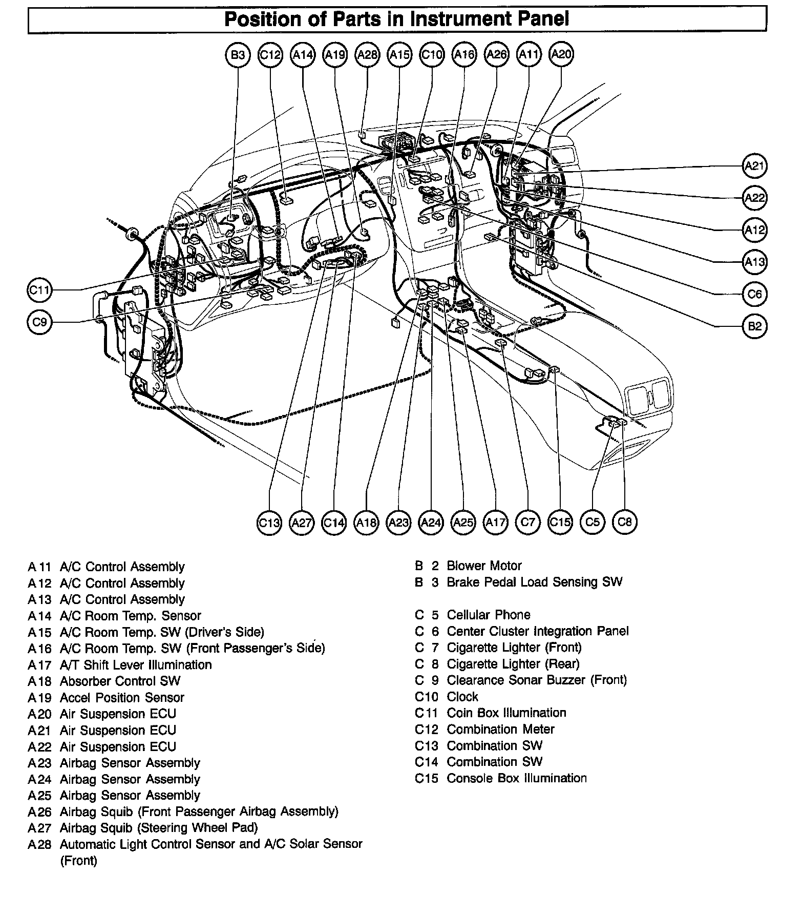 Position Of Parts In Instrument Panel (Part 1):
