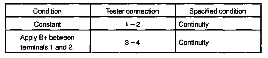 If continuity is not as specified, replace the relay.