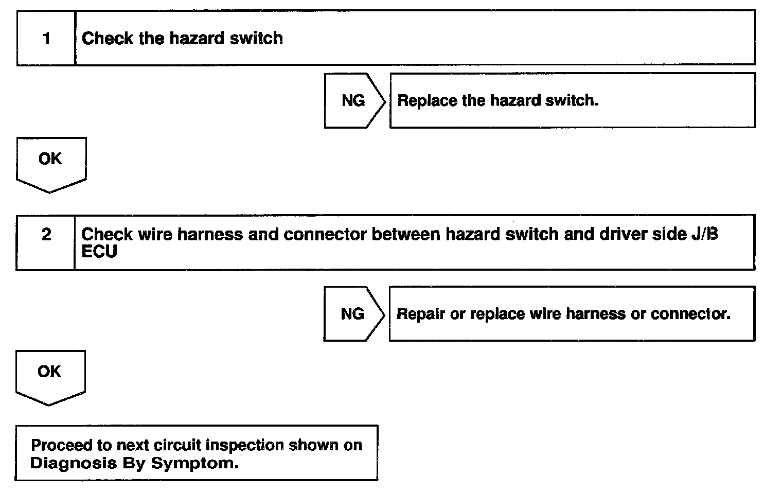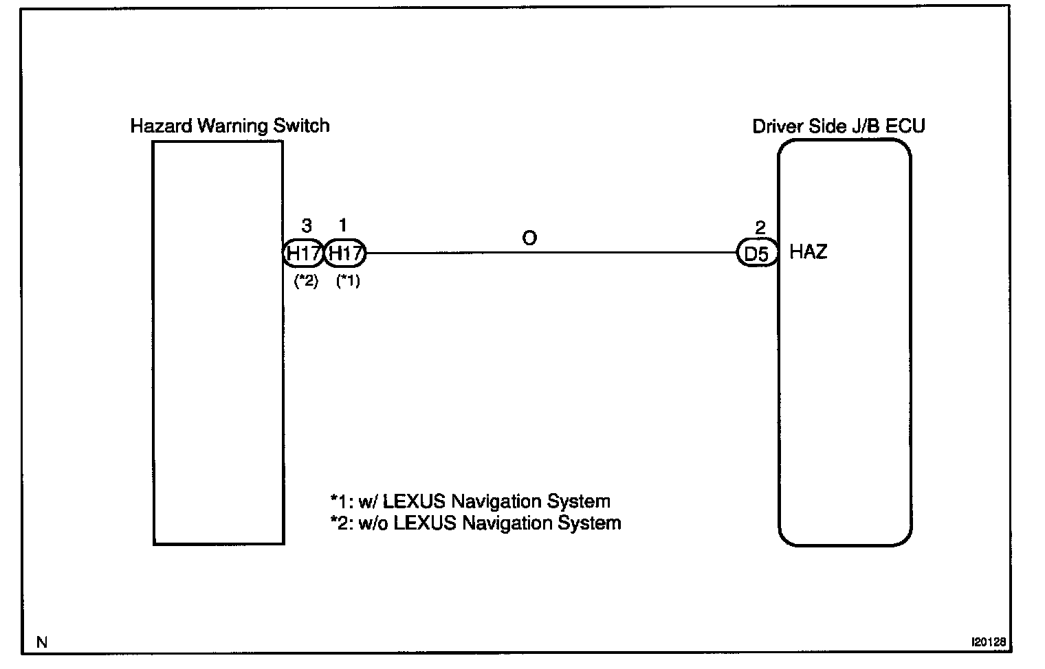 The hazard warning SW sends a signal to the Driver Side J/B ECU.