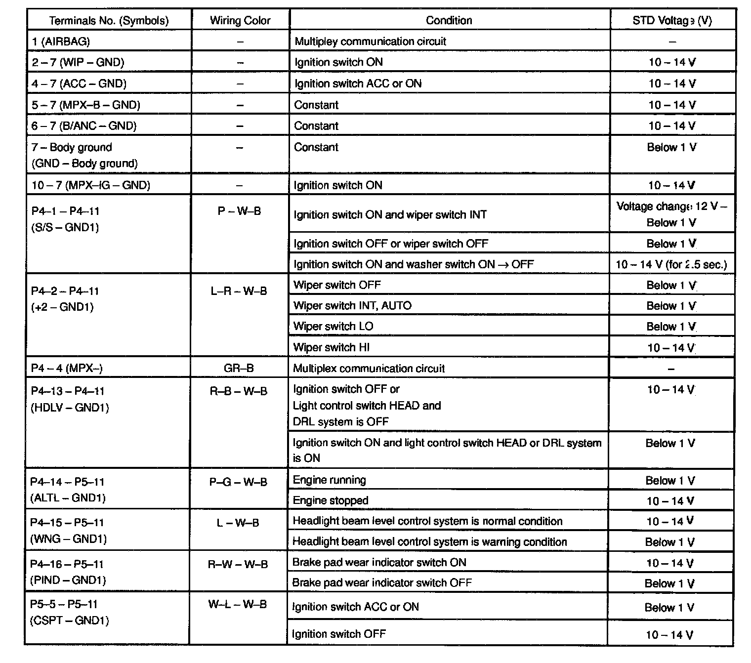 Pinout Values and Diagnostic Parameters