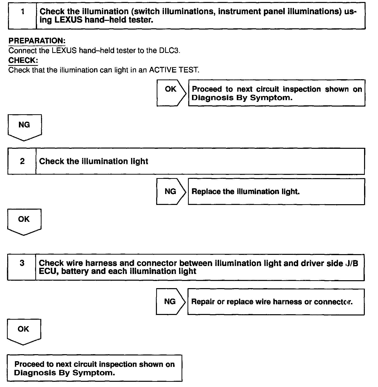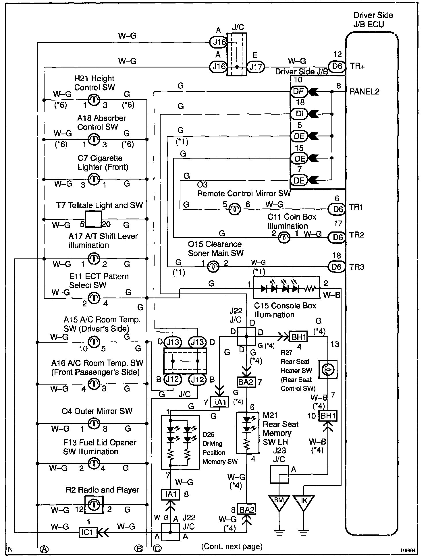 CIRCUIT DESCRIPTIONReceiving the courtesy signal from the door ECU, the Driver side J/B ECU makes the switch illuminations and the meter illumination come on.