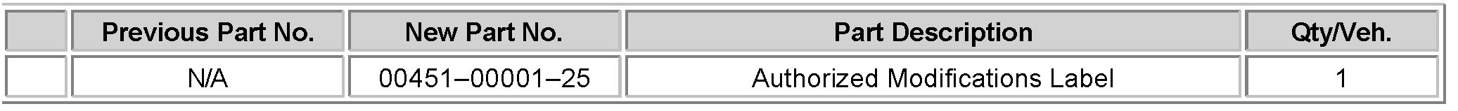 5. Enter the required information on the Authorized Modifications Label and affix it to the vehicle at the location(s) shown. The Authorized Modifications Label is available through your PDC, P/N 00451-00001-25.