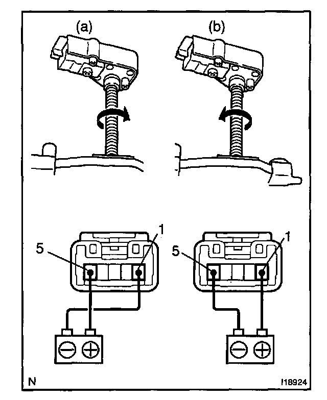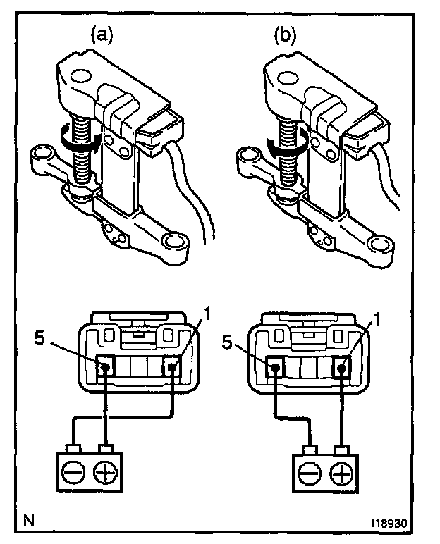 a. Connect the positive (+) lead from the battery to terminal 1, and the negative (-) lead to terminal 5, and check that the motor turns counterclockwise.