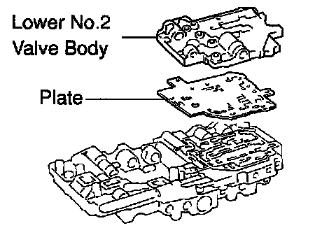 c. Align the holes of lower No.2 valve body with those of plate and place them on the lower No.1 valve body with aligning all the holes.
