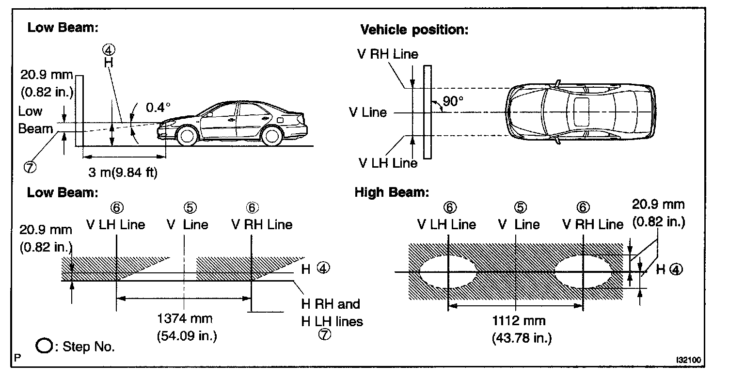 HINT: As shown in the illustration, adjust each aim of the RH and LH lights.