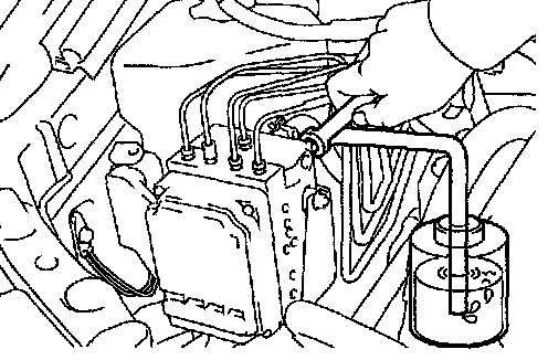 f. Bleed the air out of the ABS & TRACTION actuator, tighten the bleeder plug.