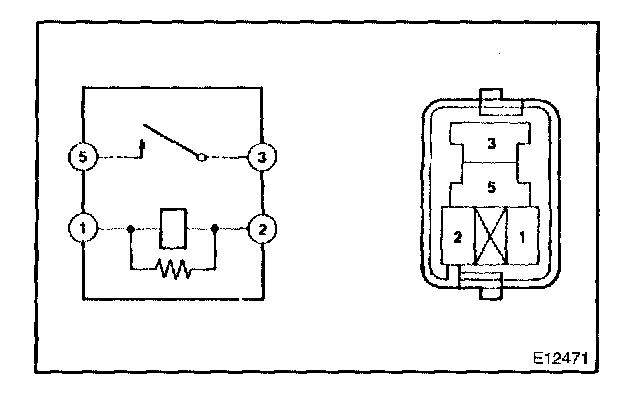 2. Using an ohmmeter, check that continuity exists between terminals 3 and 5 when the battery voltage is applied across terminals 1 and 2.