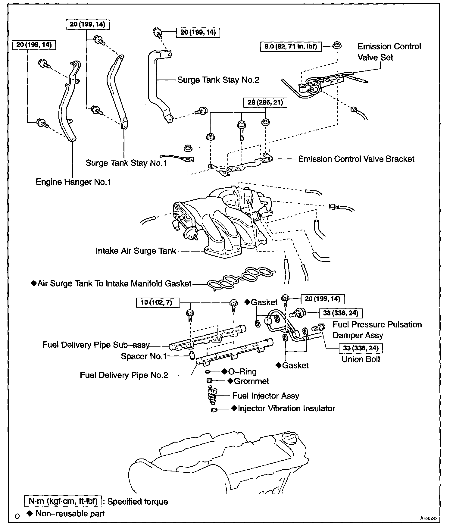 c. Install the fuel pipe No.1 to the intake manifold with a bolt.