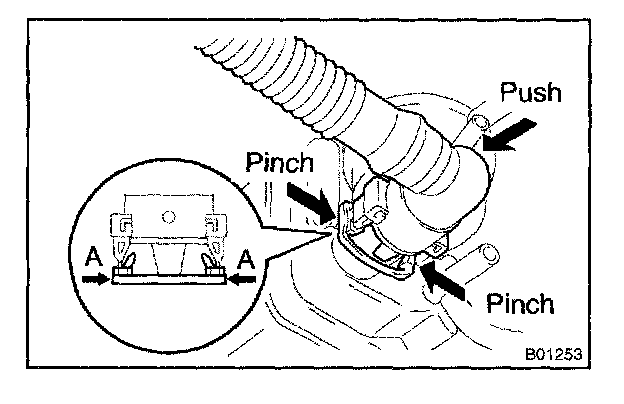 a. Pinch the fuel pump tube connector clip and then pull out the tube.