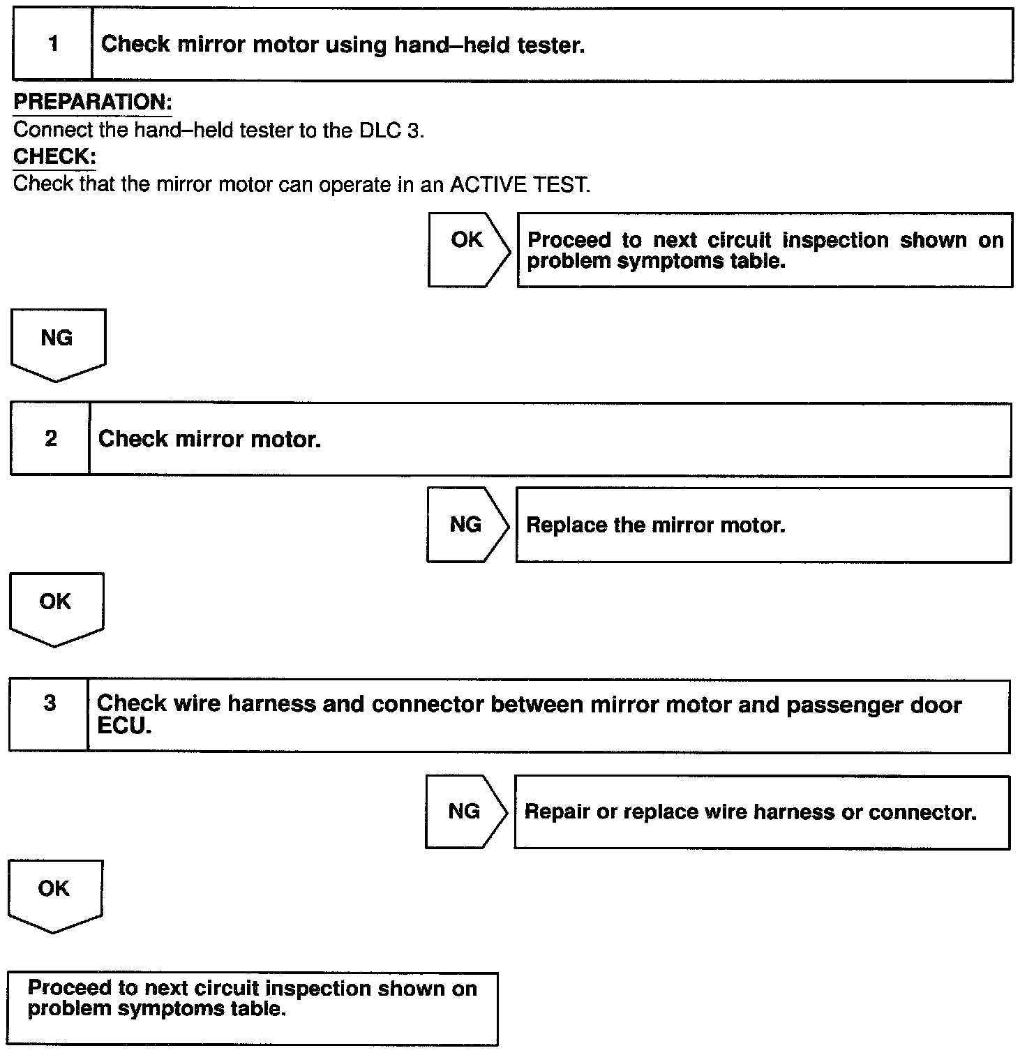 In case of using the hand-held tester, start the inspection from step 1 and in case of not using the hand-held tester, start from step 2.