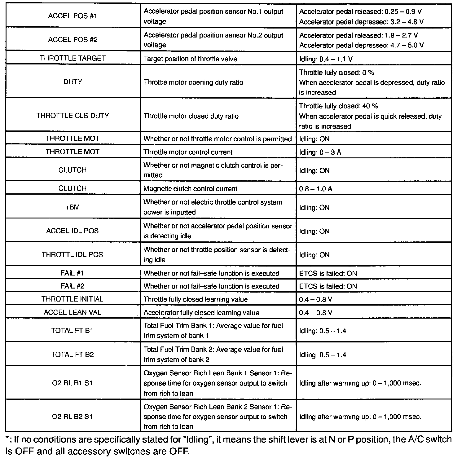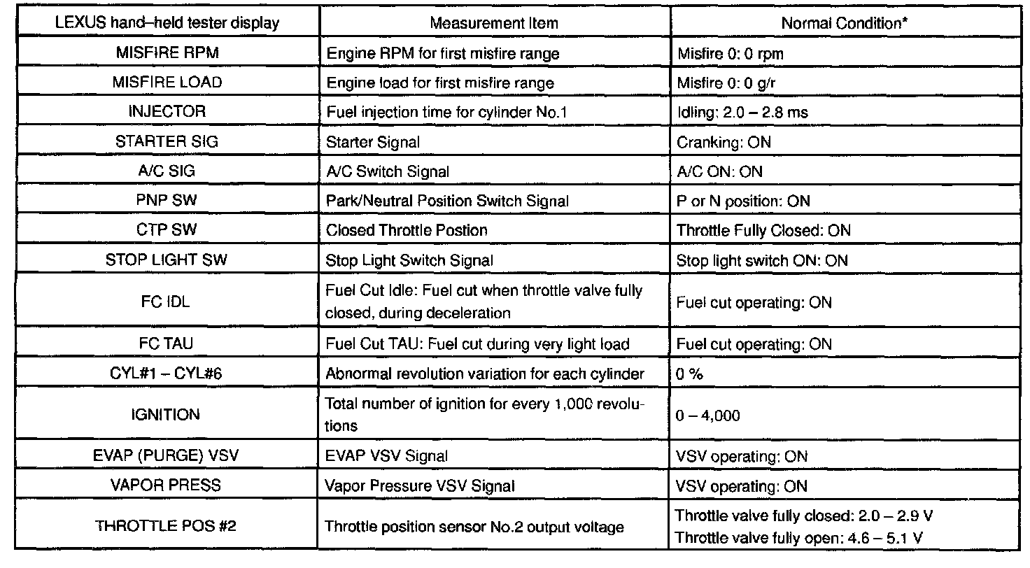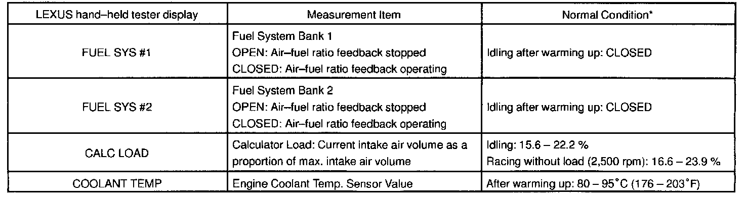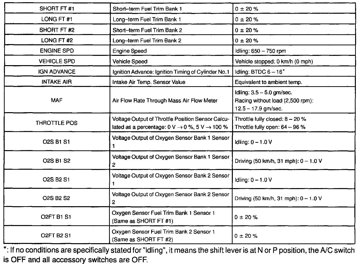 ENGINE OPERATING CONDITIONNOTE: The values given for "Normal Condition" are representative values, so a vehicle may still be normal even if its value differs from those listed here. So do not solely depend on the "Normal condition" here when deciding whether a part is faulty or not.