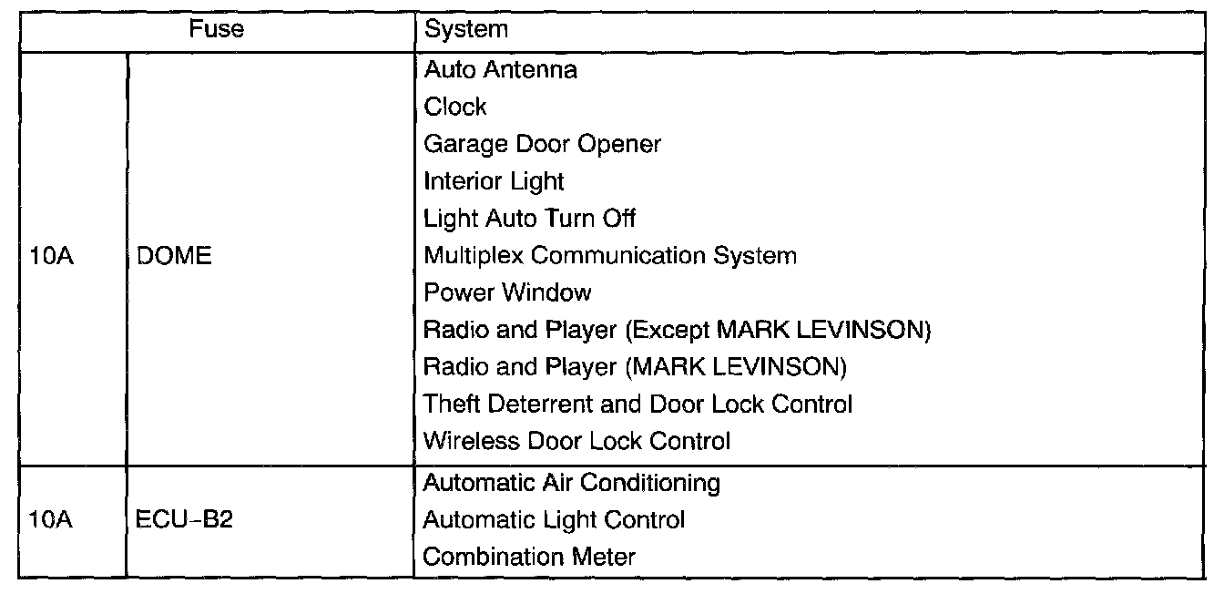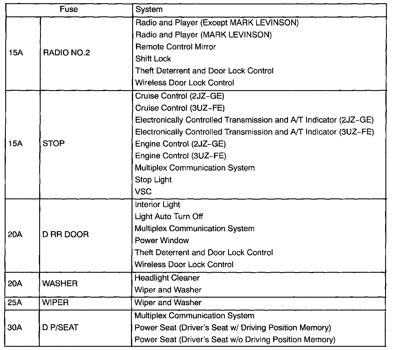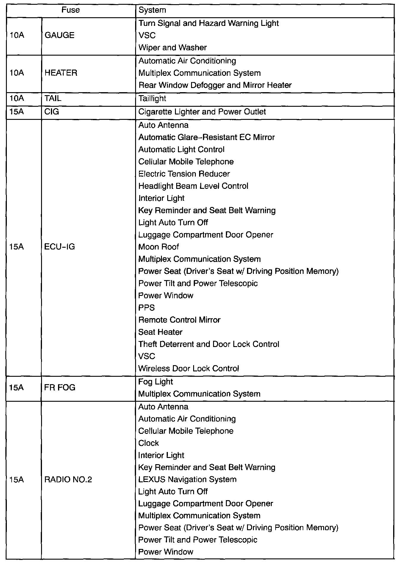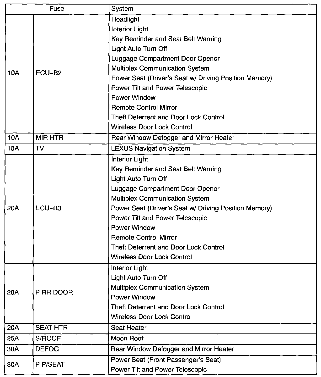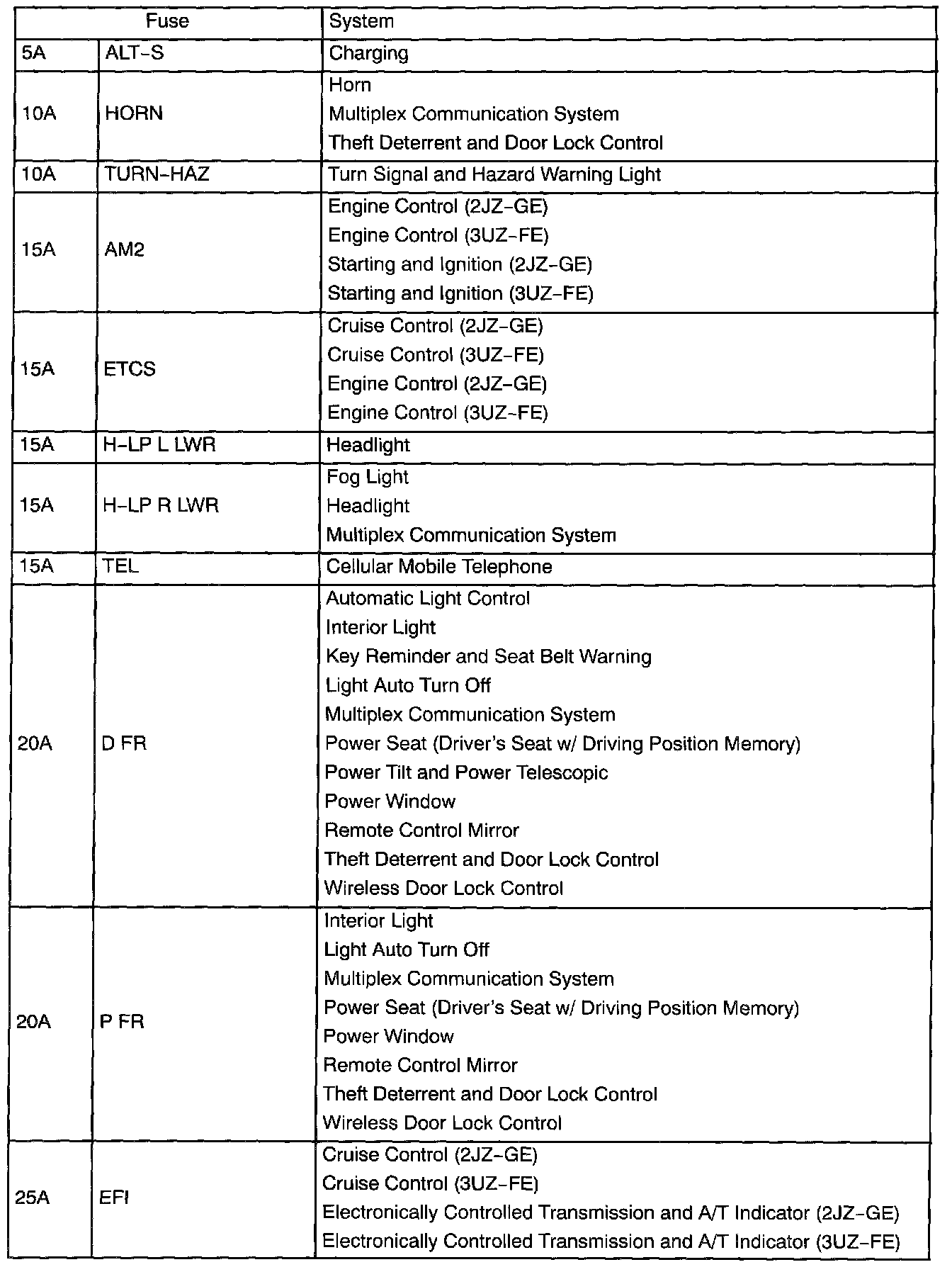 Driver Side J/B - Fuse Application Part 2: