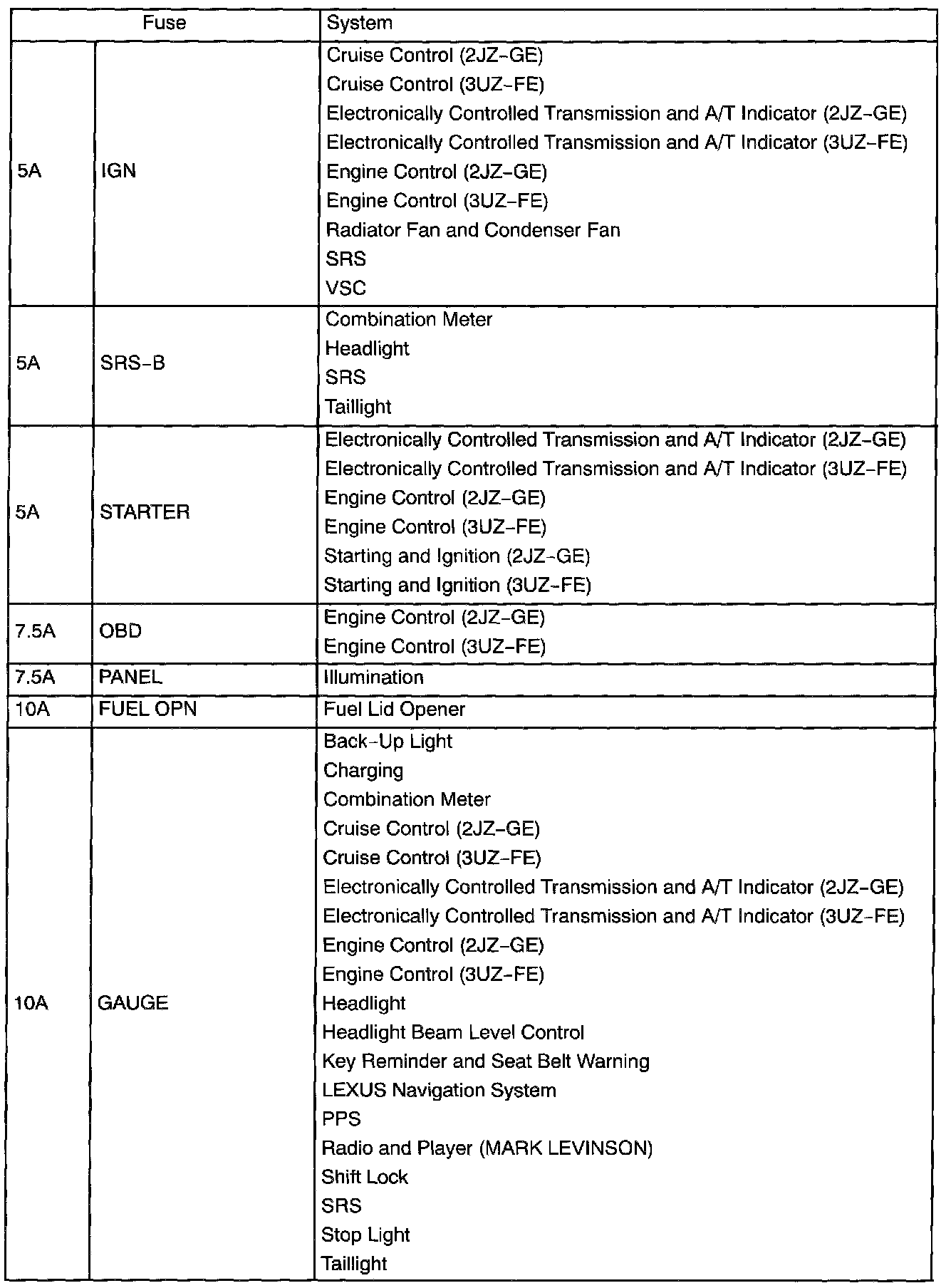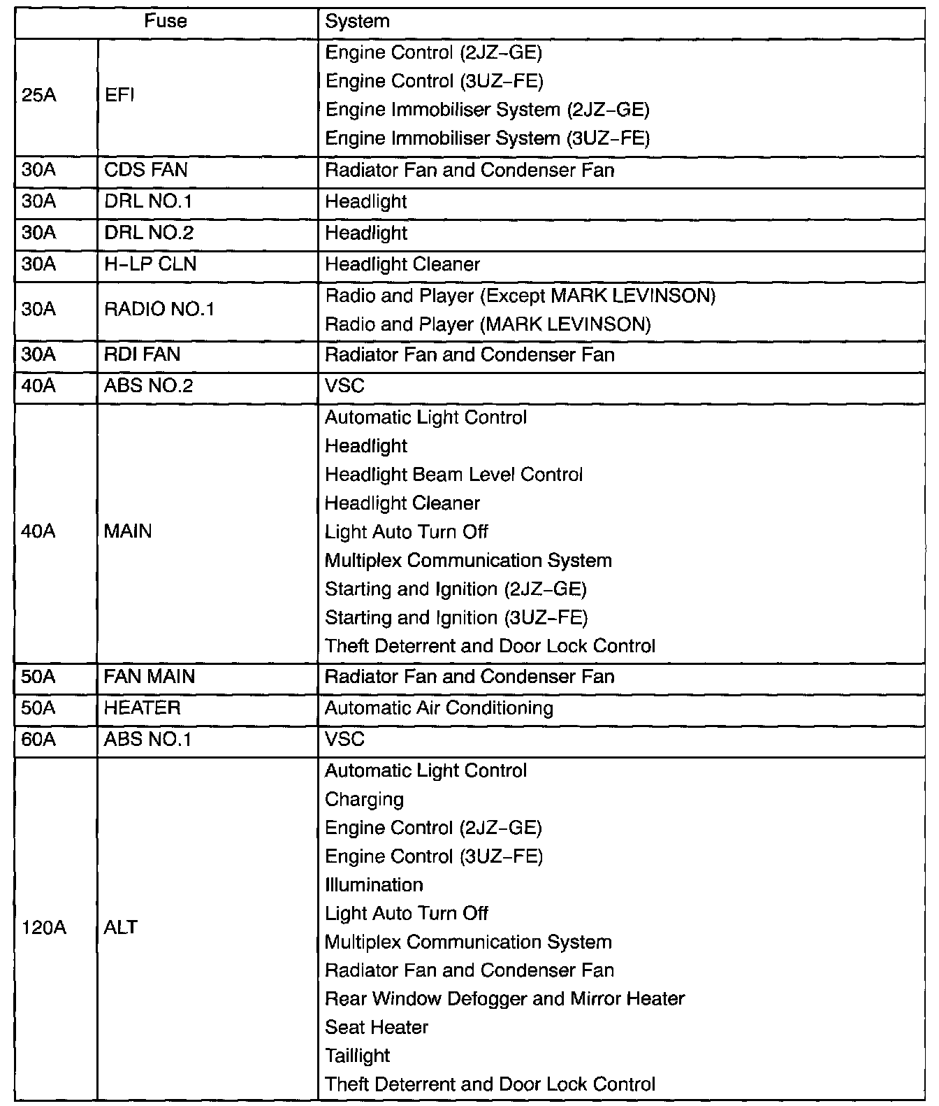 Engine Room No.3 R/B - Fuse Application: