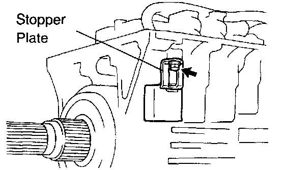 b. Insert the transmission wire to the case and install the stopper plate with the bolt.