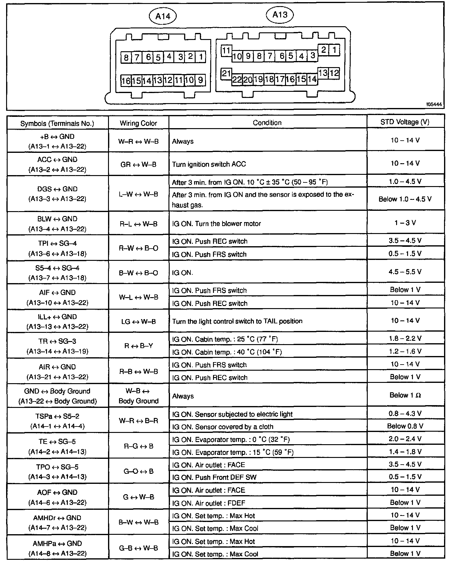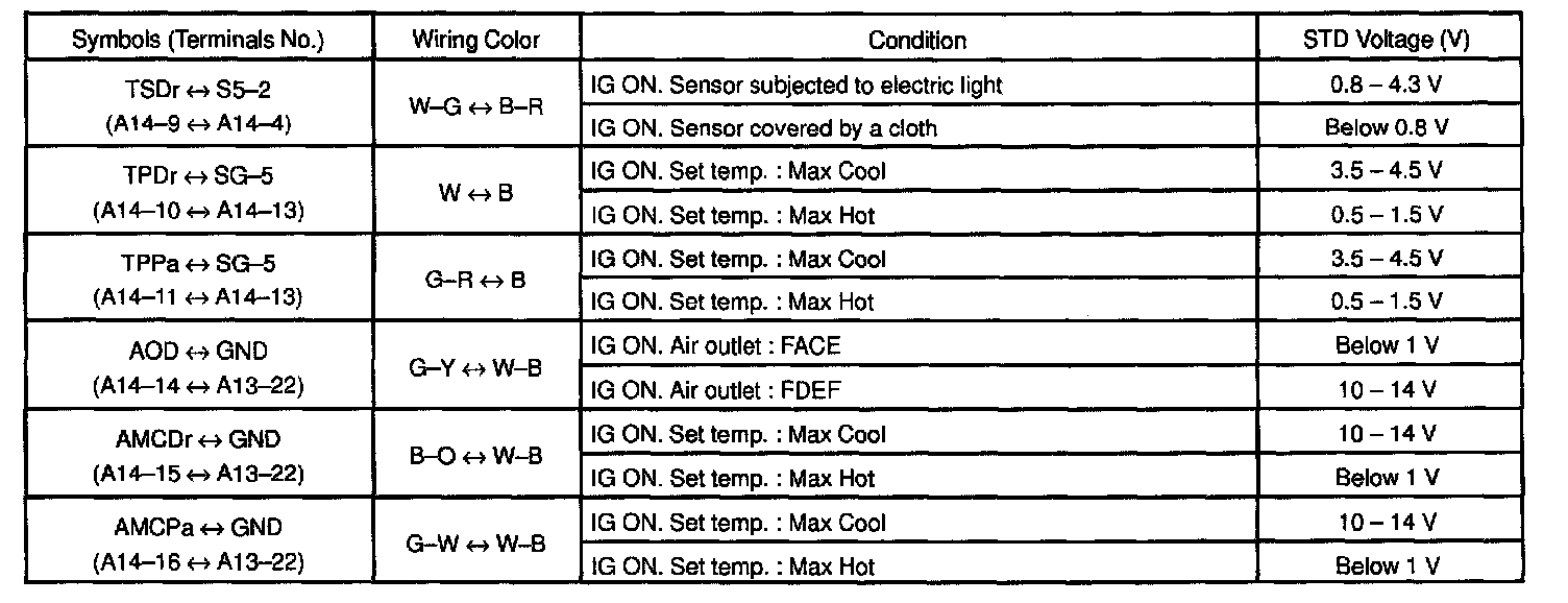 Pinout Values and Diagnostic Parameters