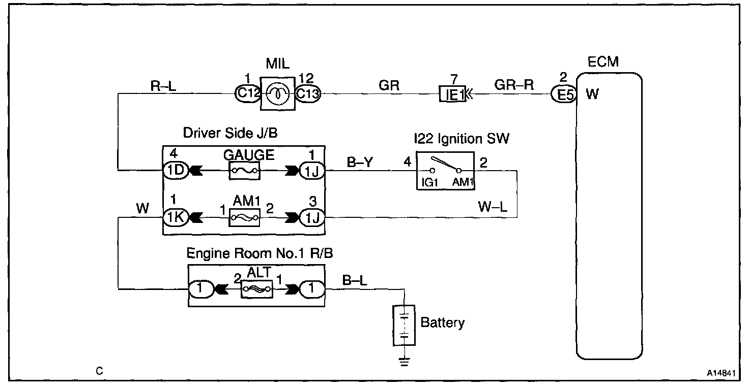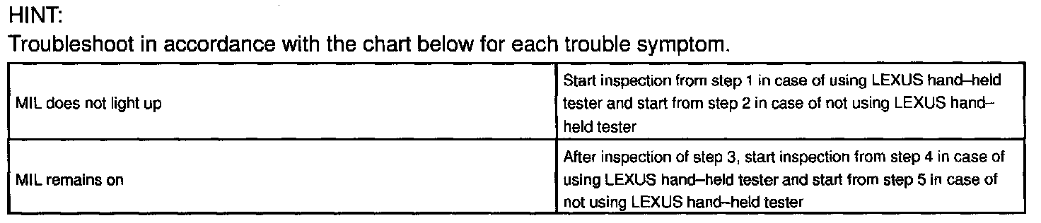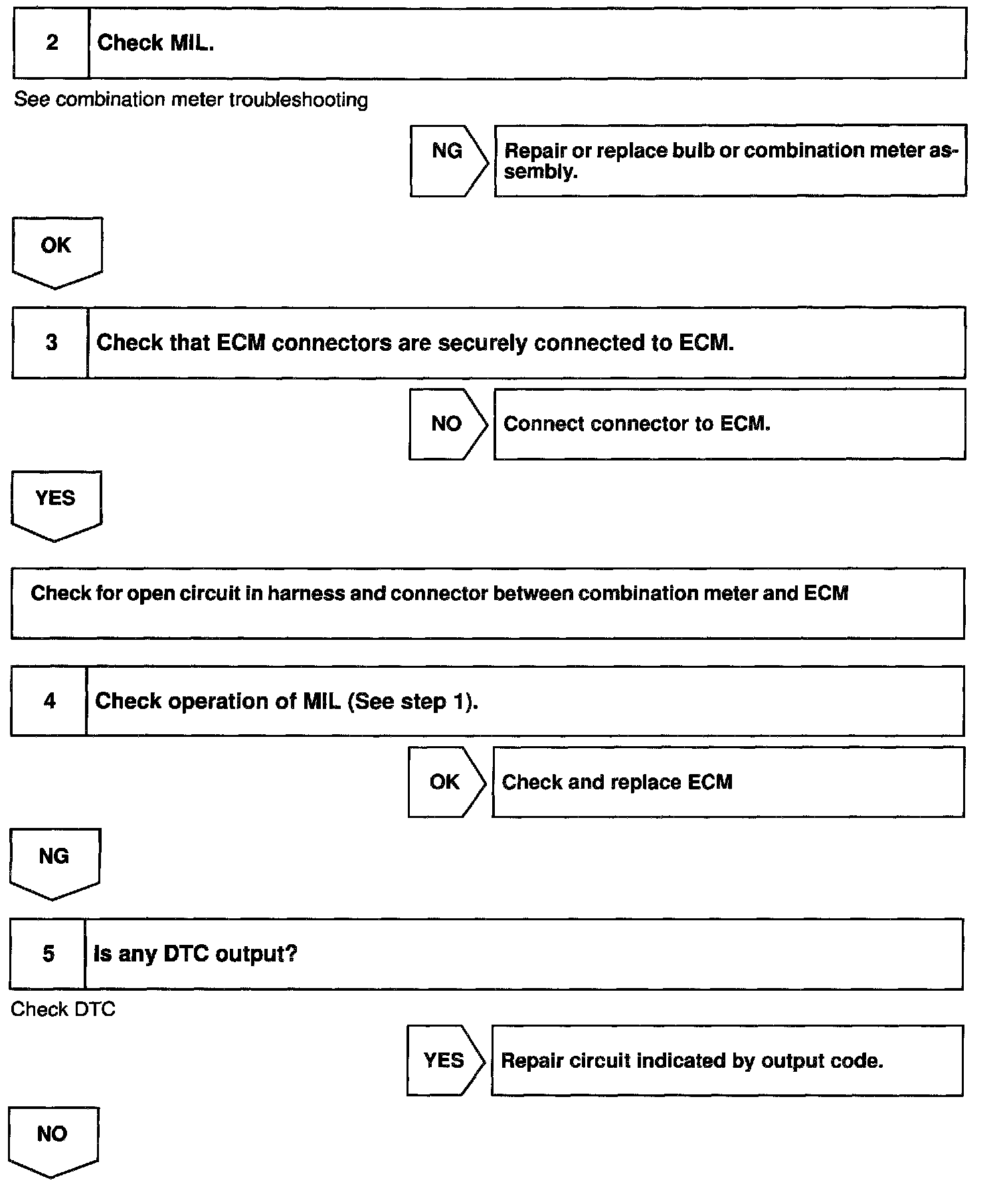 If the ECM detects trouble, the MIL lights up. At this time, the ECM records a DTC in memory.