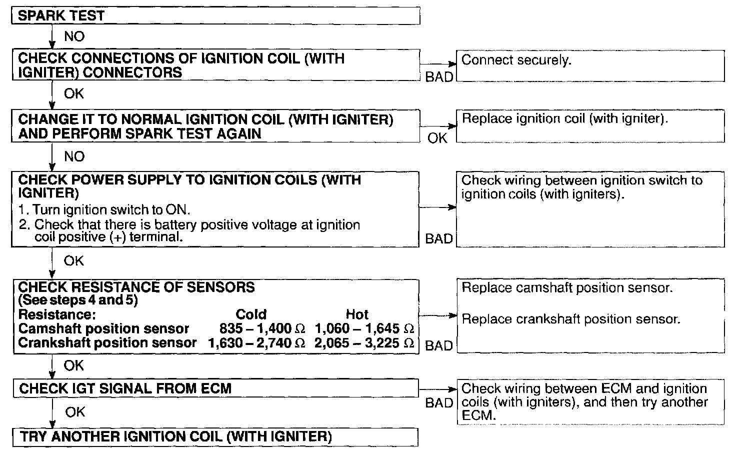 If the spark does not occur, do the test as per given flow chart.
