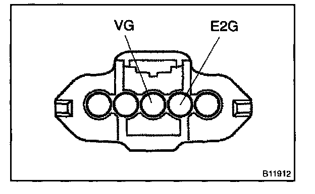 d. Using a voltmeter, connect the positive (+) tester probe to terminal VG, and negative (-) tester probe to terminal E2G.