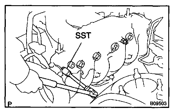 b. Using SST, remove the knock sensor.