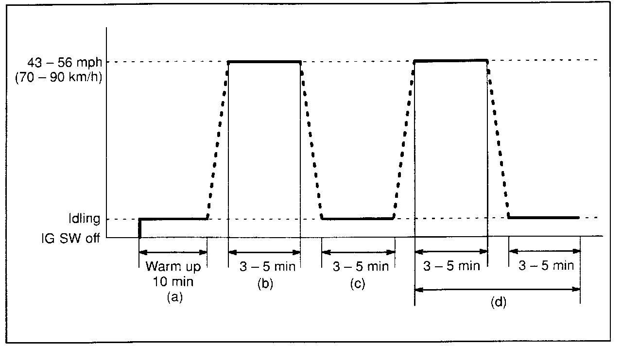 b. Drive the vehicle at 43 - 56 mph (70 - 90 km/h) for a period of 3 - 5 minutes.
