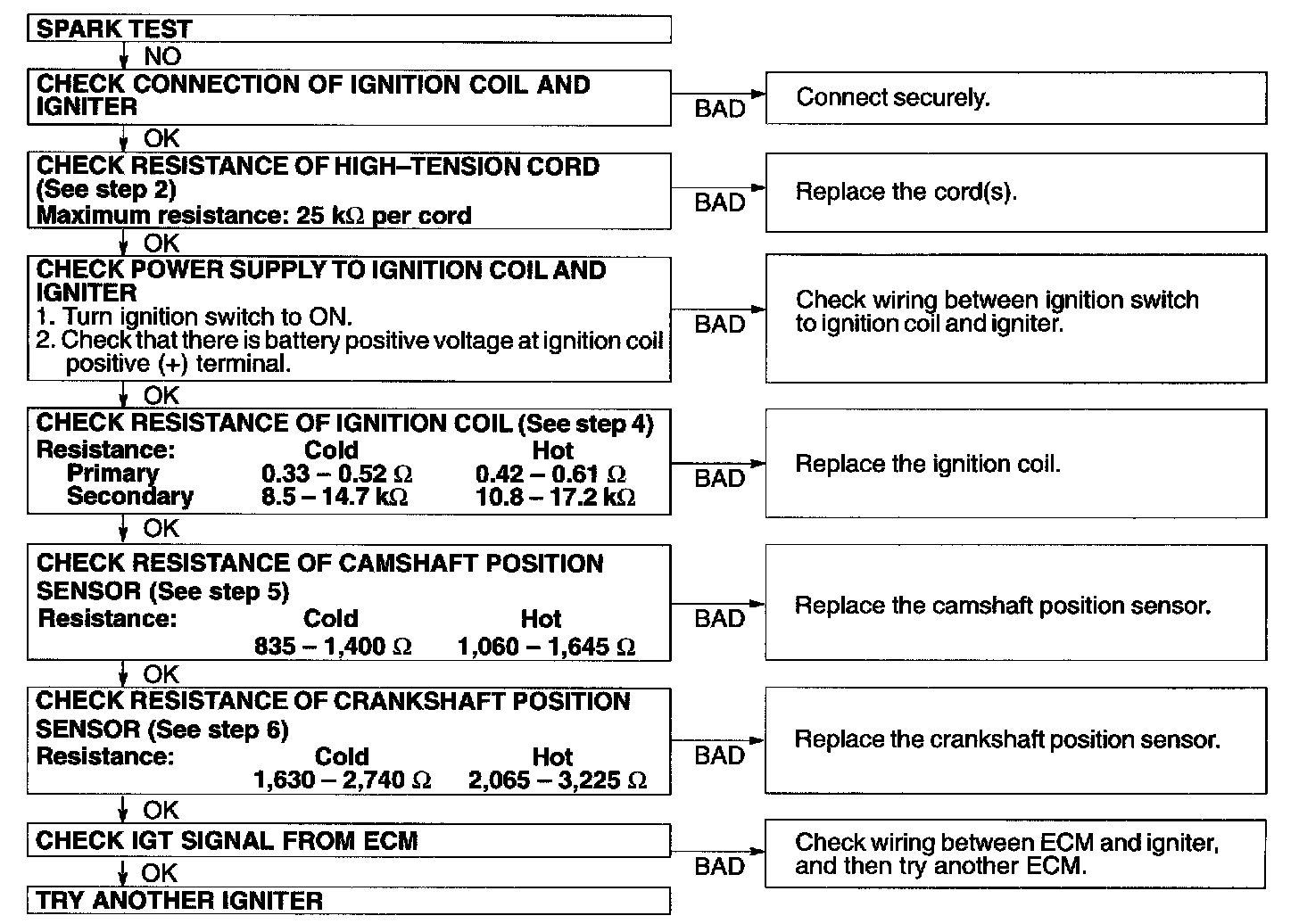 5. Check if spark occurs while engine is being cranked.