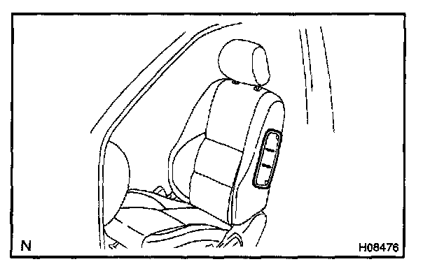 The inflater and bag of the SRS side airbag are stored in the side airbag assembly and cannot be disassembled. The inflater contains a squib, igniter charge, gas generator, etc., and inflates the bag when instructed by the side and curtain shield airbag sensor assembly.