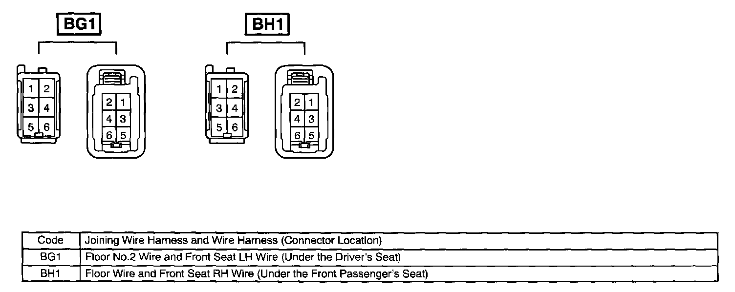 Under Hood Wire Harness To Wire Harness Connectors (BG1 - BH1):