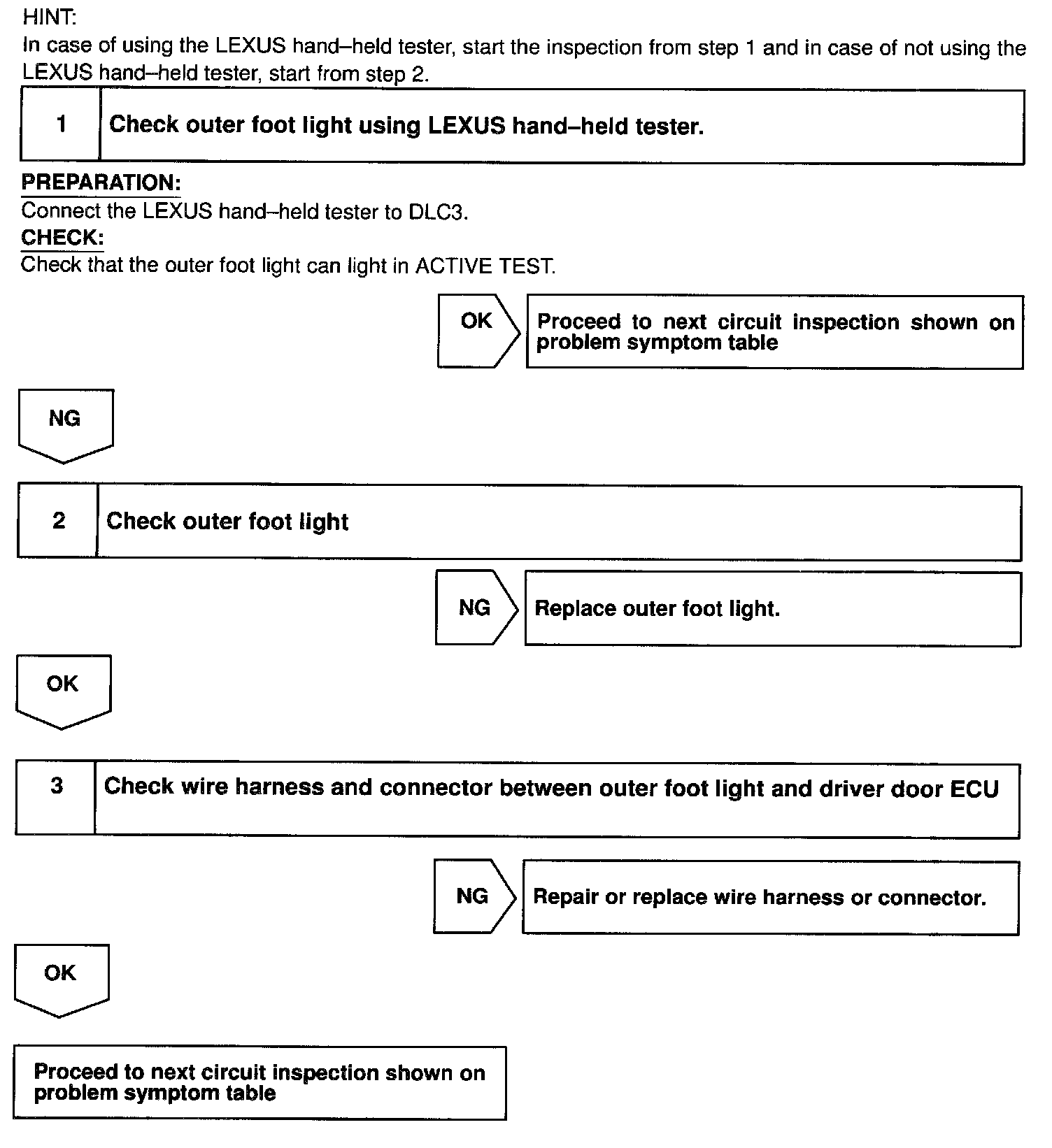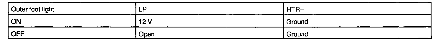 When the battery voltage is supplied to the terminal as shown, the outer foot light functions accordingly.