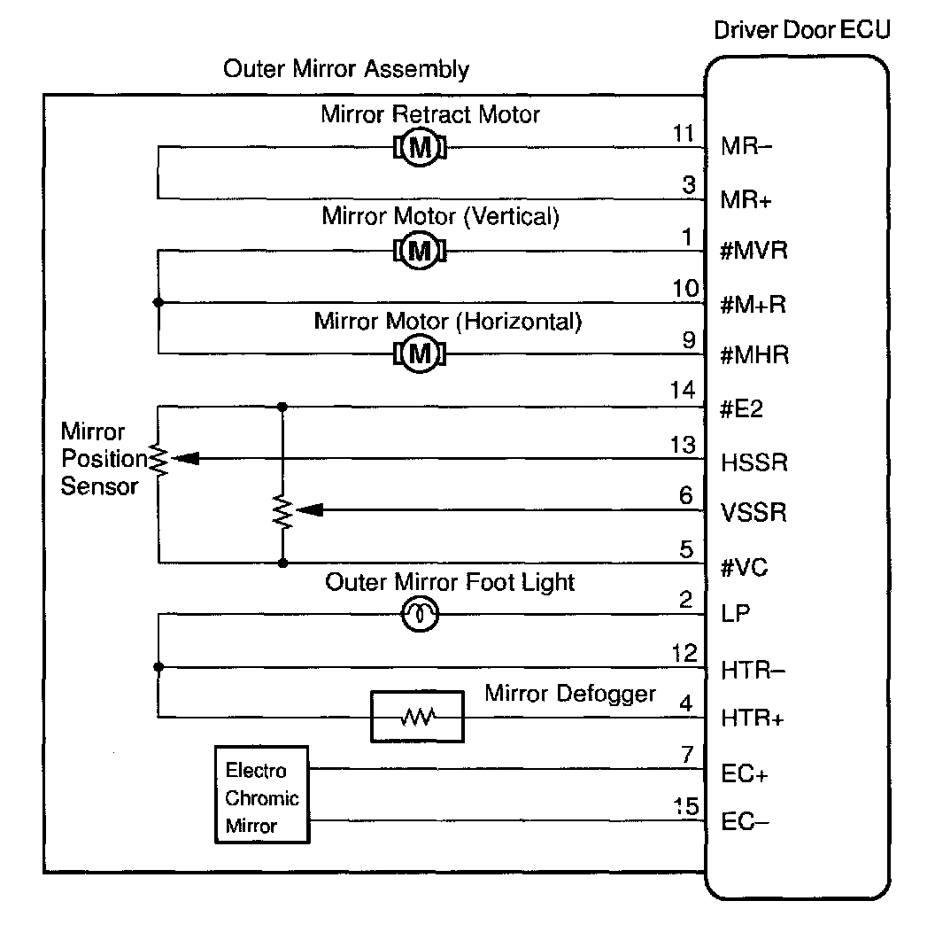 CIRCUIT DESCRIPTIONThe outer foot light is built in the outer mirror assembly.