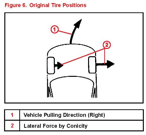 ^ When vehicle pulling is due to conicity, the amount of drift can be reduced and the direction of drift can be changed by changing the location of the tire or reversing the tire when installing it on the wheel.