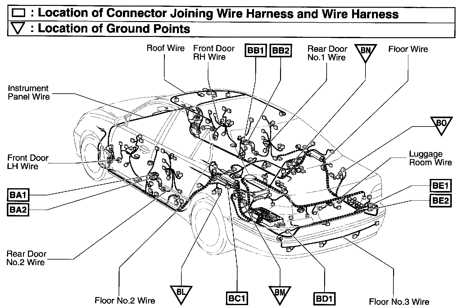 BA1 Rear Door No.2 Wire and Floor No.2 Wire (Left Center Pillar)