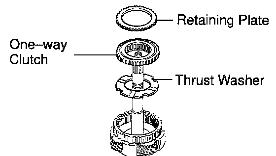 b. Remove the retaining plate, one-way clutch and thrust washer.