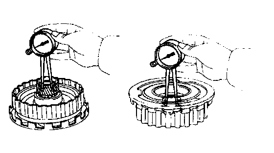 Using a dial indicator, measure the inside diameter of the clutch drum bushings.