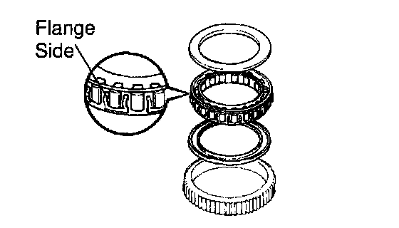 b. Install the one-way clutch and 2 inner races into the outer race with the flange side of the one-way clutch facing upward.