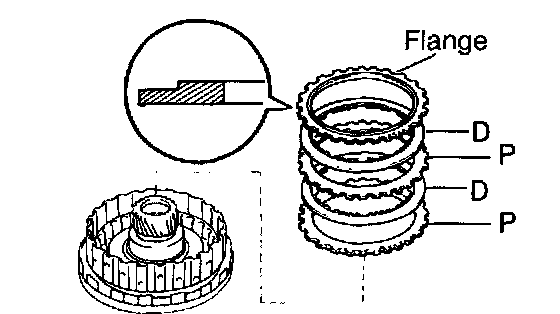 Check to see if the sliding surface of the disc, plate and flange are worn or burnt. If necessary, replace them.