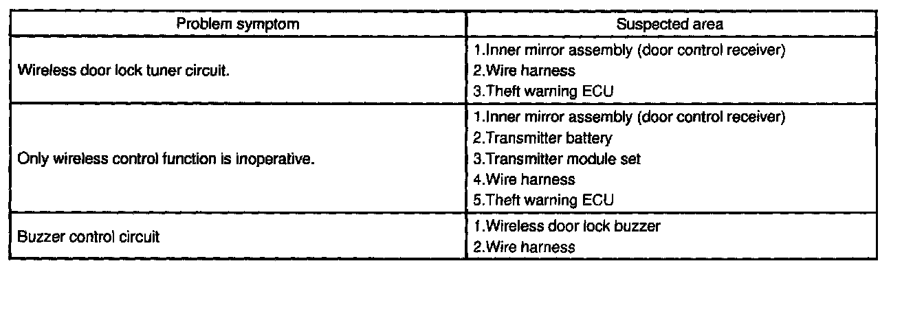 Problem Symptoms Table: