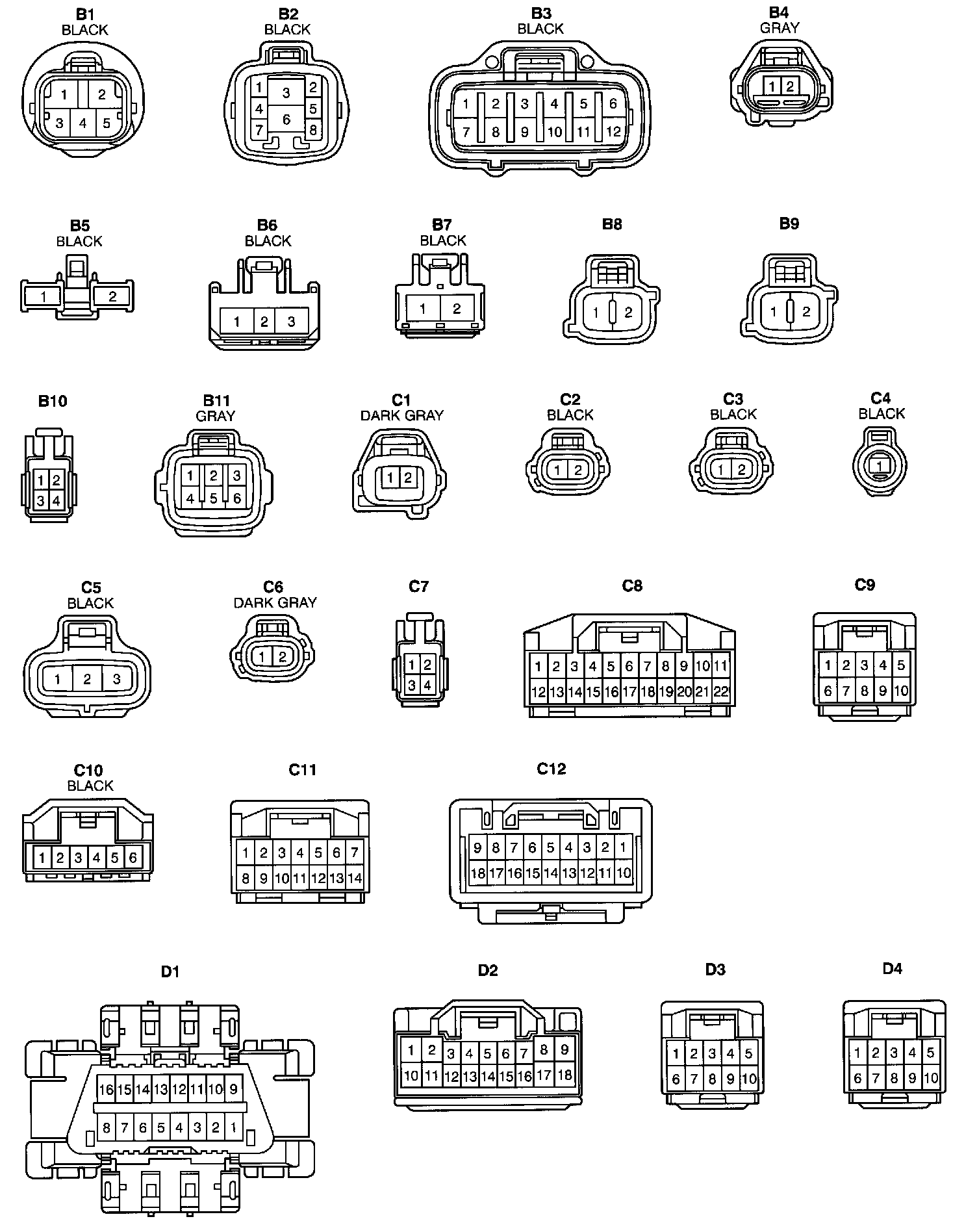 Connector View B1 - D4: