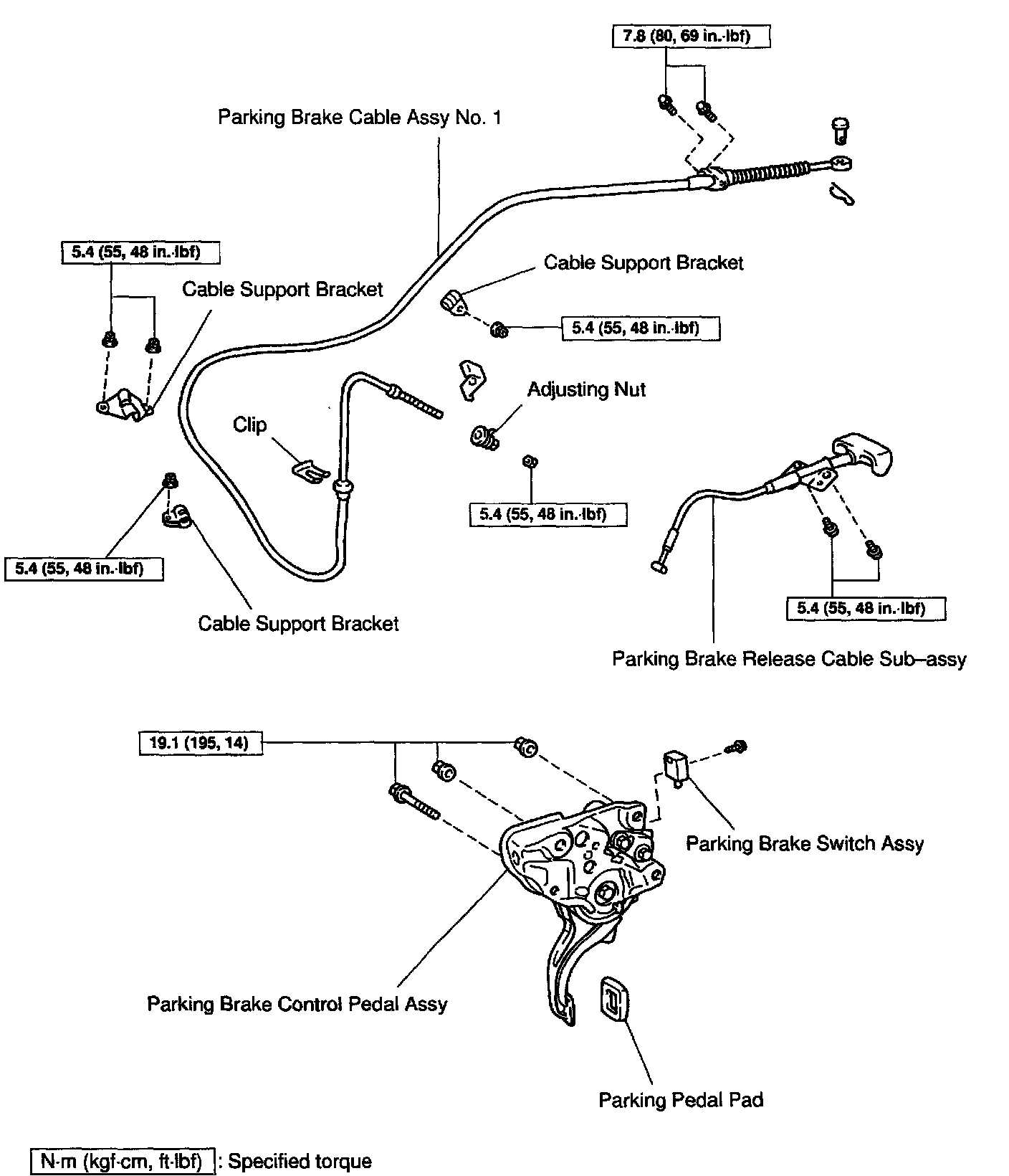 PARKING BRAKE CONTROL PEDAL ASSEMBLY:PARKING BRAKE CABLE ASSEMBLY NO.1: