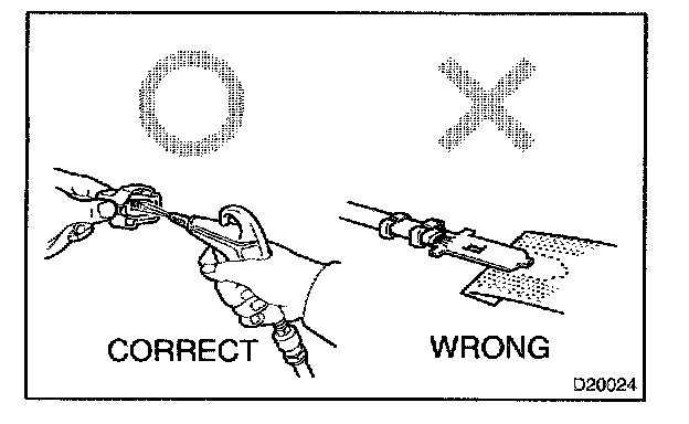 5. In case of checking the connector with a Toyota electrical tester, perform it at the back side (harness side) of the connector using a mini test lead.