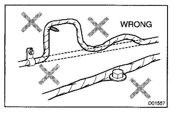 2. Never twist, pull or slack off the wire harness more than necessary.