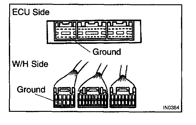2. Disconnect the ECU connector, check the ground terminals on the ECU side and the wire harness side for bend and check the contact pressure.