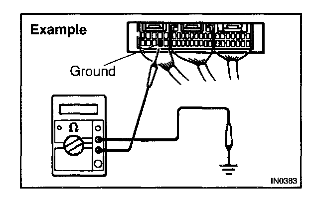 1. Measure the resistance between the ECU ground terminal and the body ground.