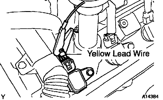 2. Connect the tester probe of a timing light to the yellow lead wire of the ignition coil connector for No. 1 cylinder.