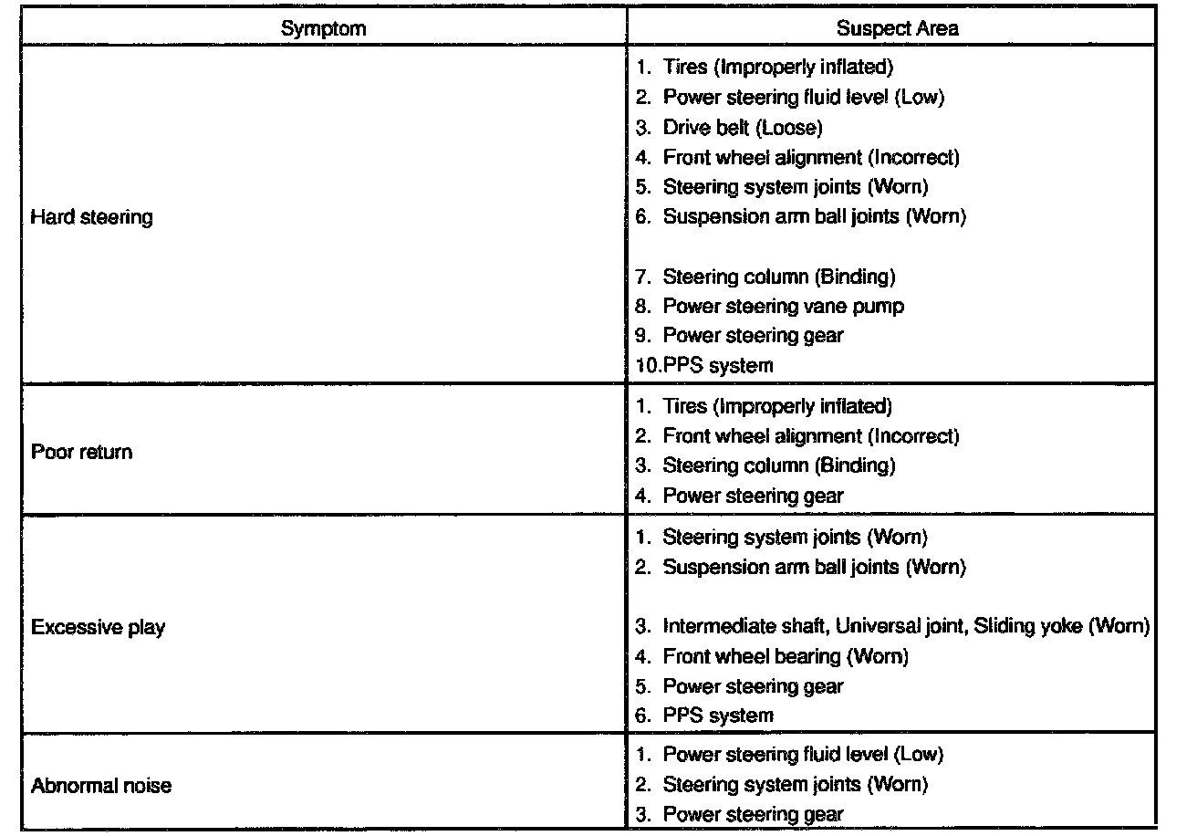 HINT: When the problem occurs on the power tilt and telescopic steering system, refer to Diagnostics.