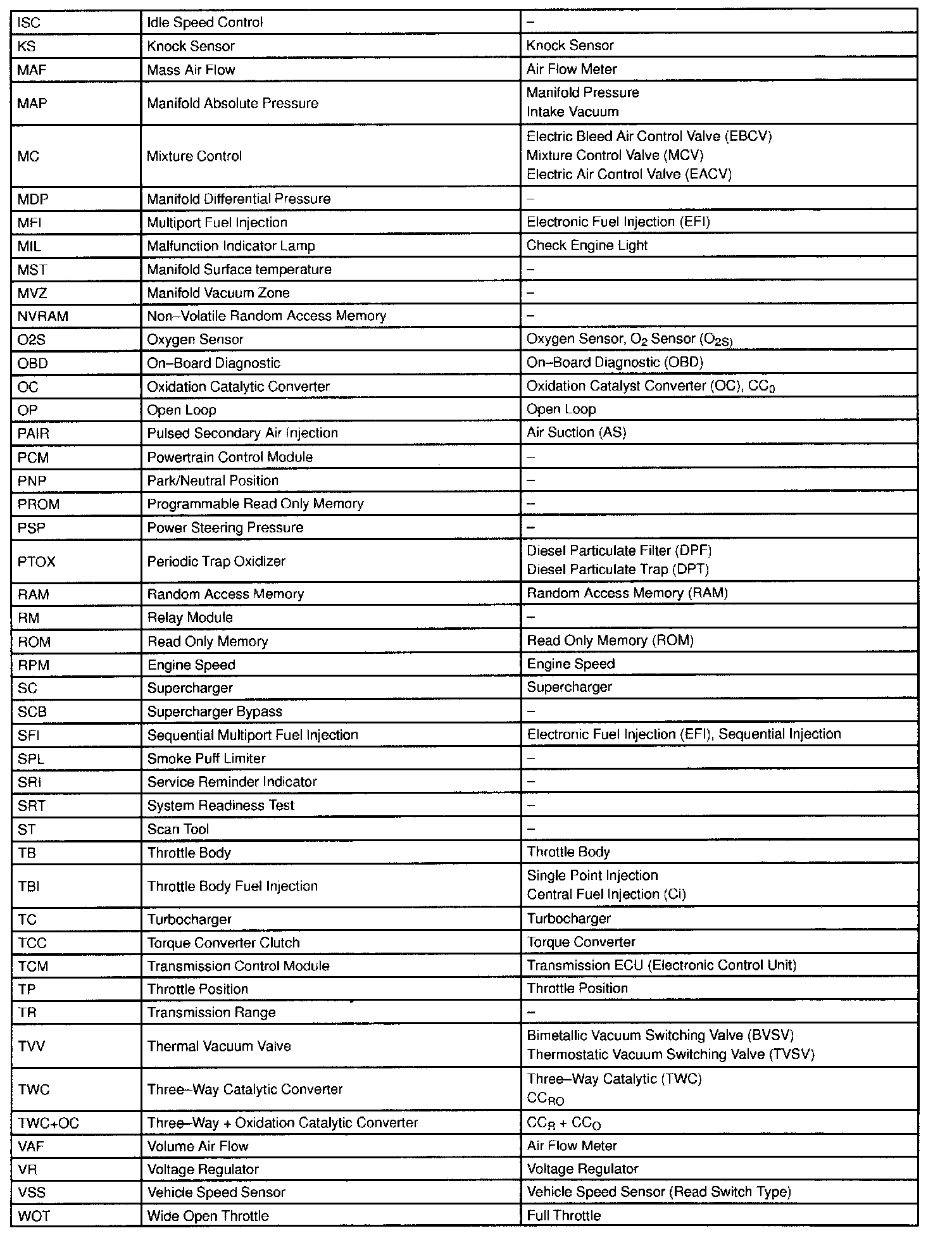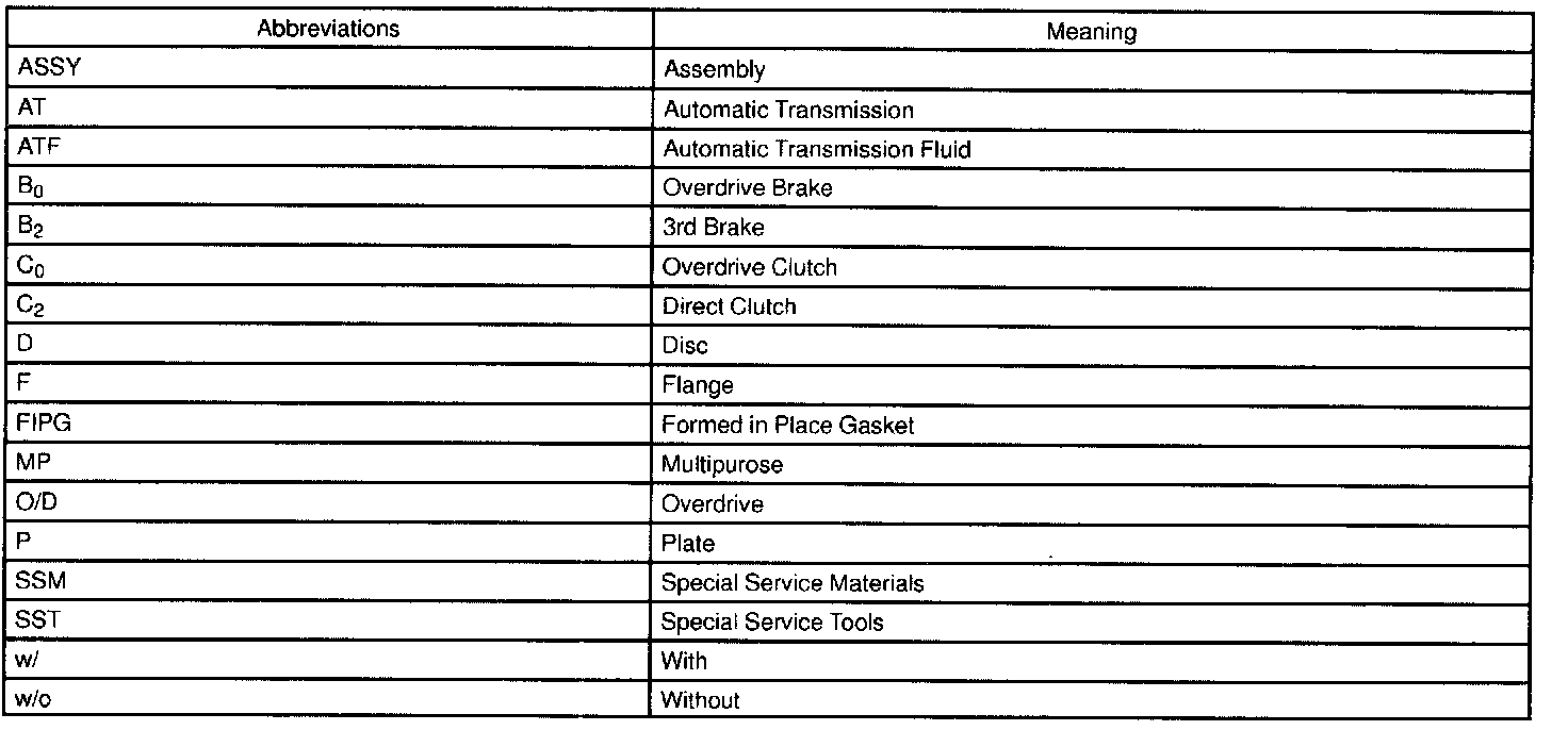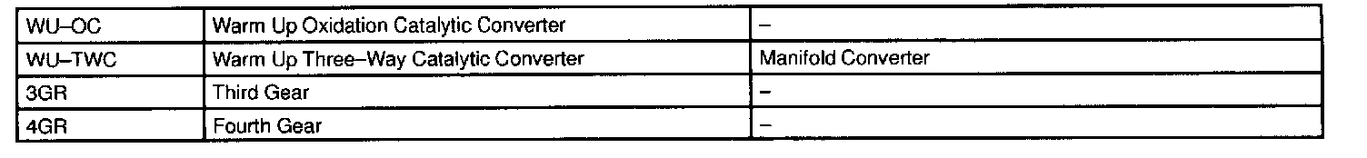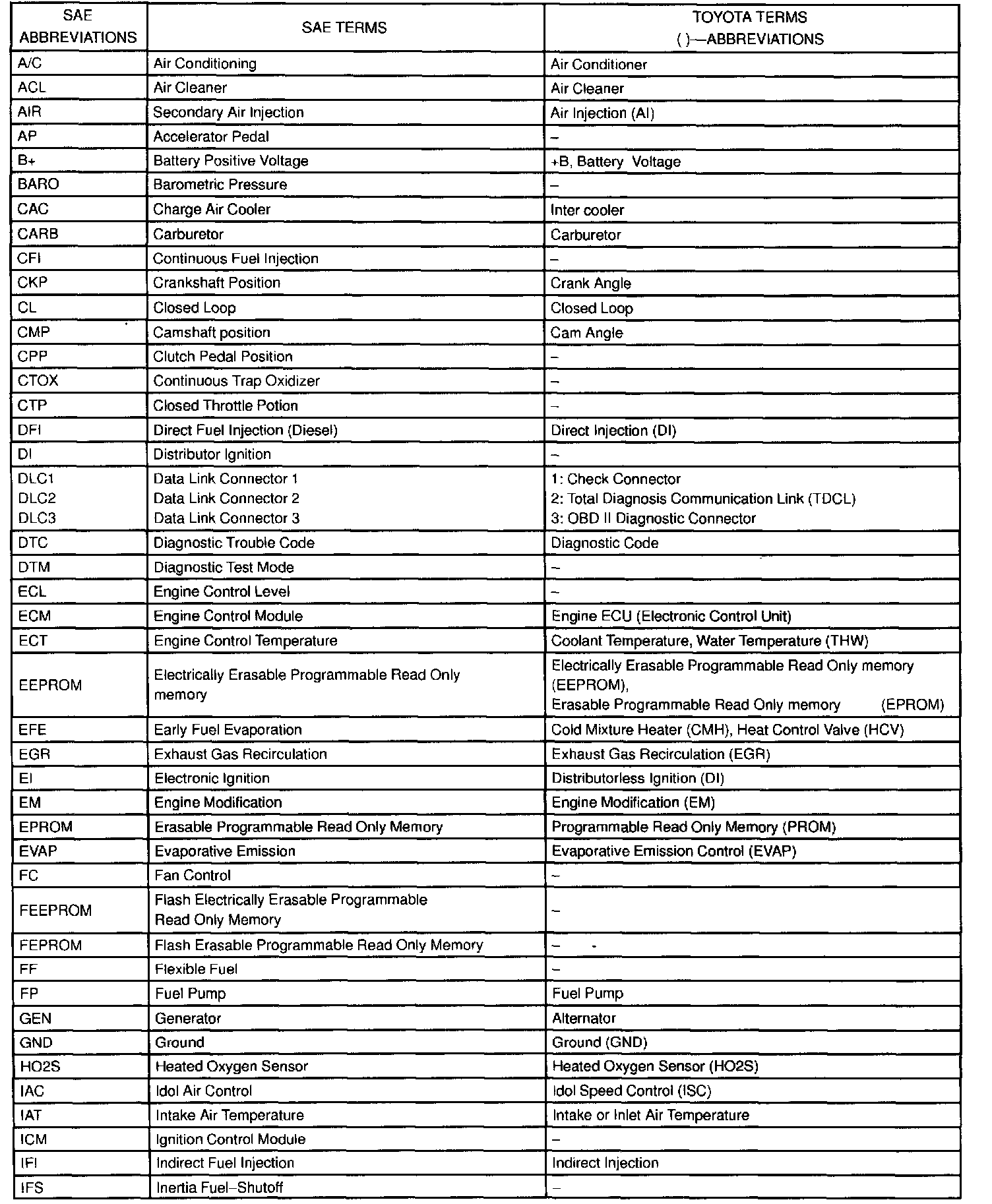 This glossary lists all SAE-J1930 terms and abbreviations used in this manual in compliance with SAE recommendations, as well as their Toyota equivalents.