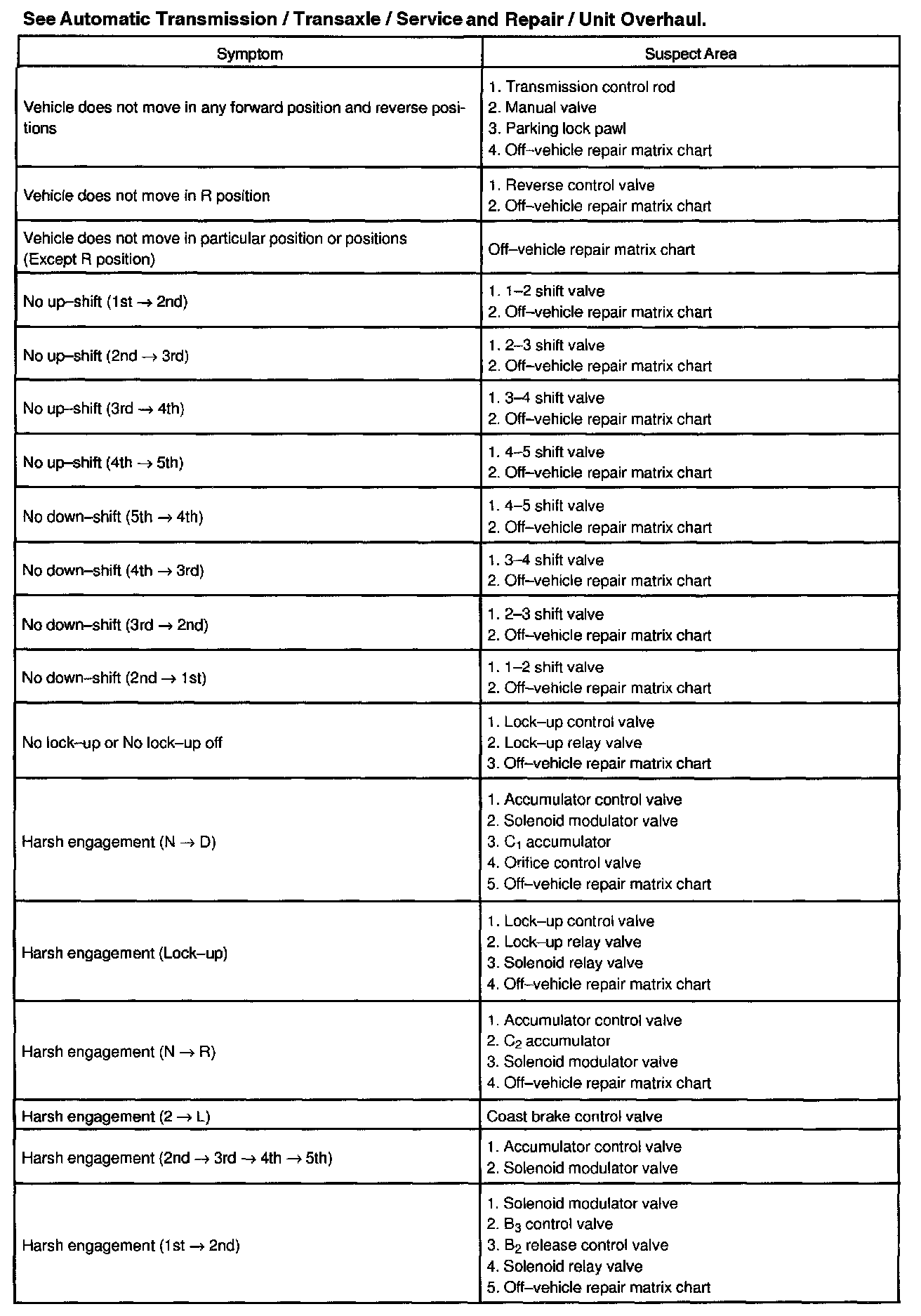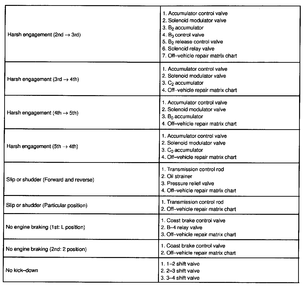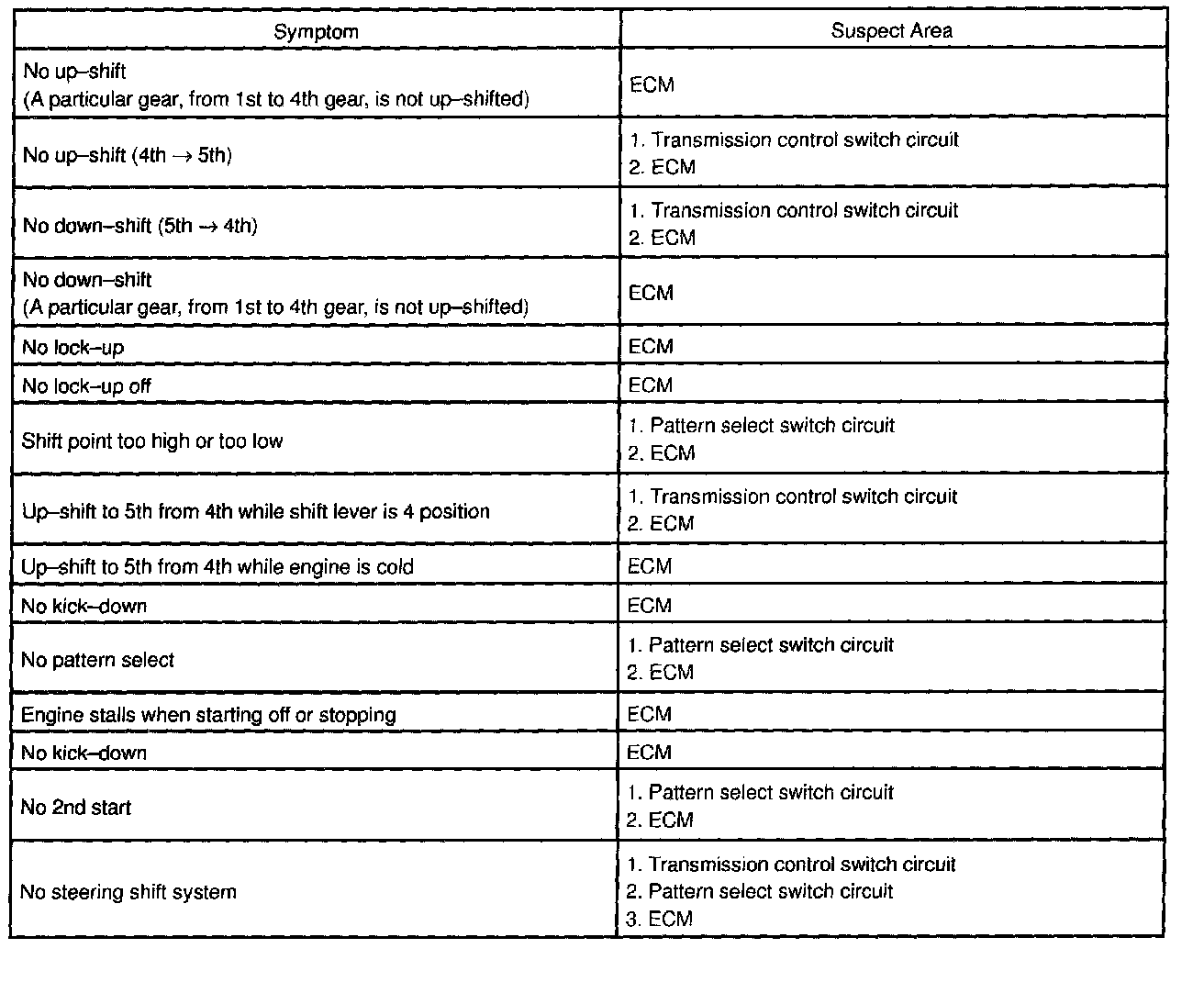 PROBLEM SYMPTOMS TABLEHINT: If a normal code 5 displayed during the DTC check but the trouble still occurs, check the circuits for each symptom in the order given in the charts and proceed to the troubleshooting.