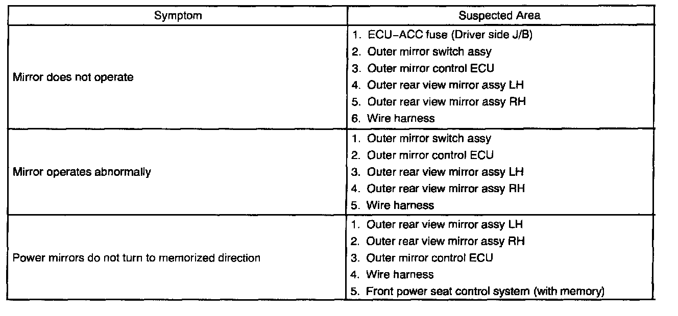 Problem Symptoms Table:
